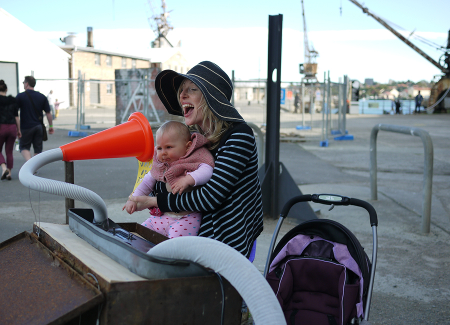 Insomniac seagulls spray through the black night air as I wander the Docks Precinct where once-purposeful machinery - paragons of their era - now rust and hulk. There I encounter a crane that talks back. When you yell into a box at its base, the sound is returned from deep within the machinery's guts in bestial booms that carry muffled echoes of your own intonations.